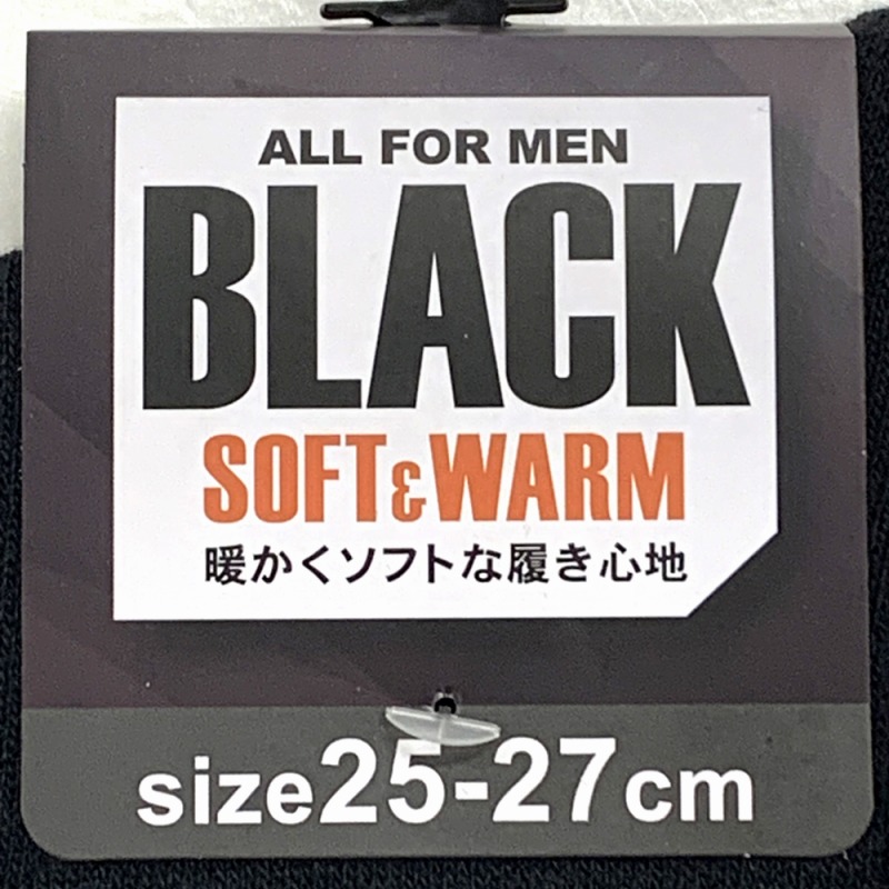 【暖かくソフトな履き心地】紳士 綿混 無地パイルソックス(クロ)