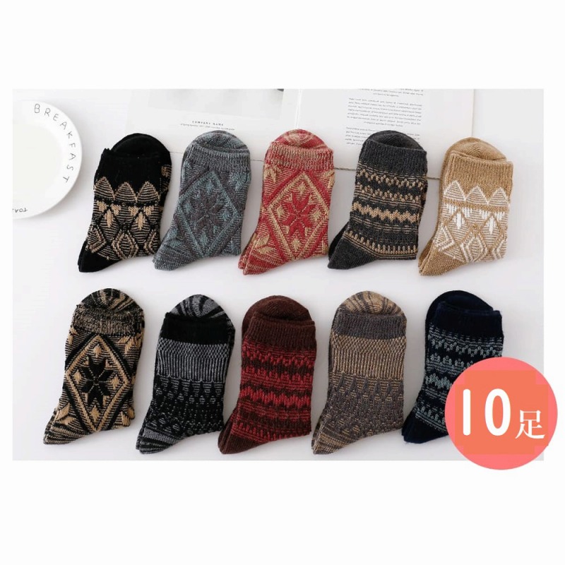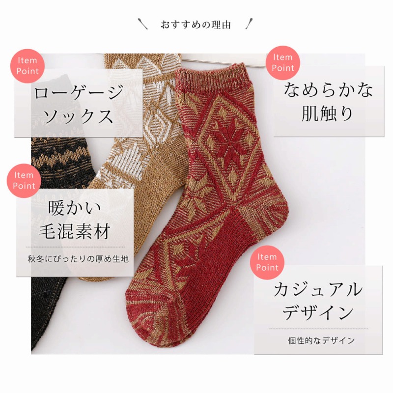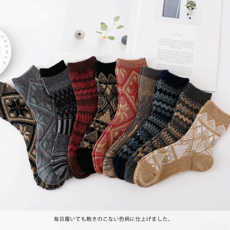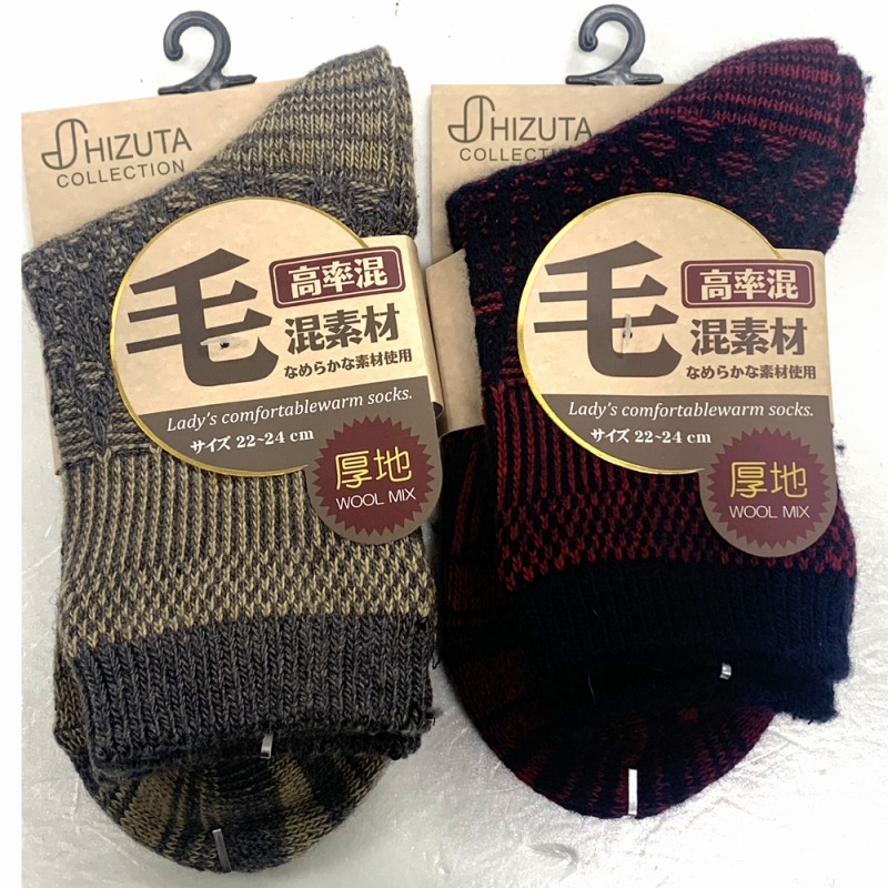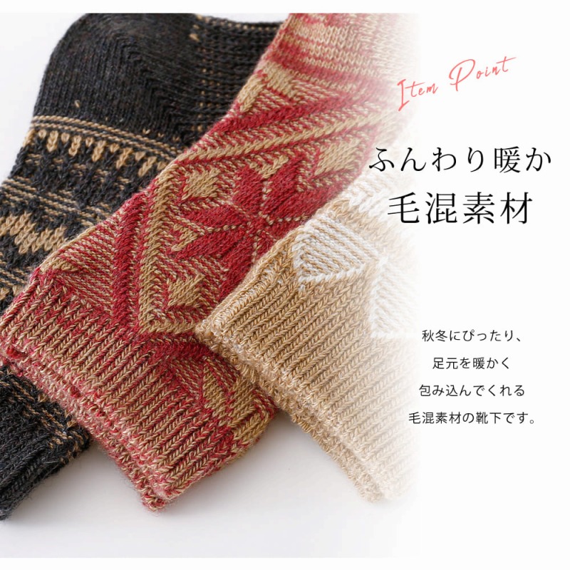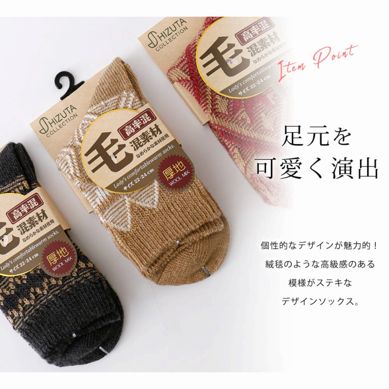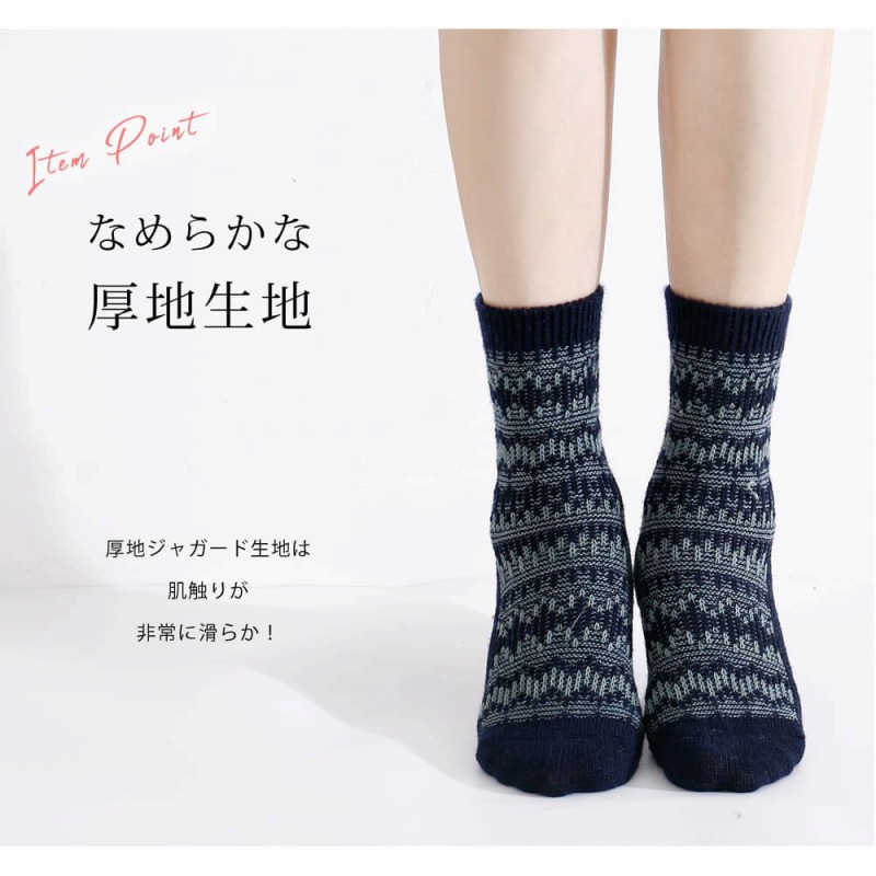 【柔らかで暖か☆アウトドアにも最適】婦人 毛高率混 厚手ジャガード ソックス