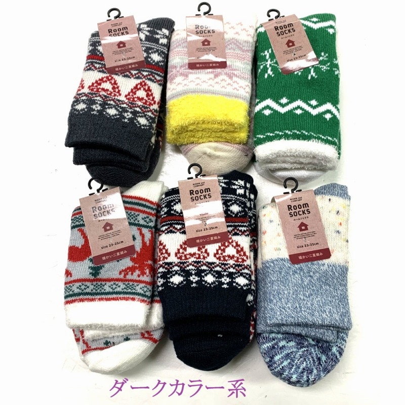 【値下げで最終入荷☆お家で暖か♪】婦人 内側ふわふわボア 2重編み 柄ソックス