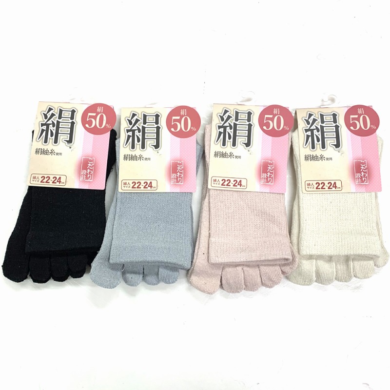 【2025AW新定番☆シルク】婦人 絹紬糸50%配合 かかと付5本指ソックス