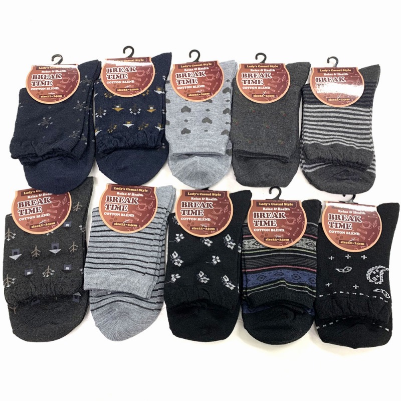 【お買得限定品☆年間売れ筋】婦人 綿混 モノトーン柄 ソックス
