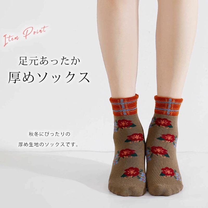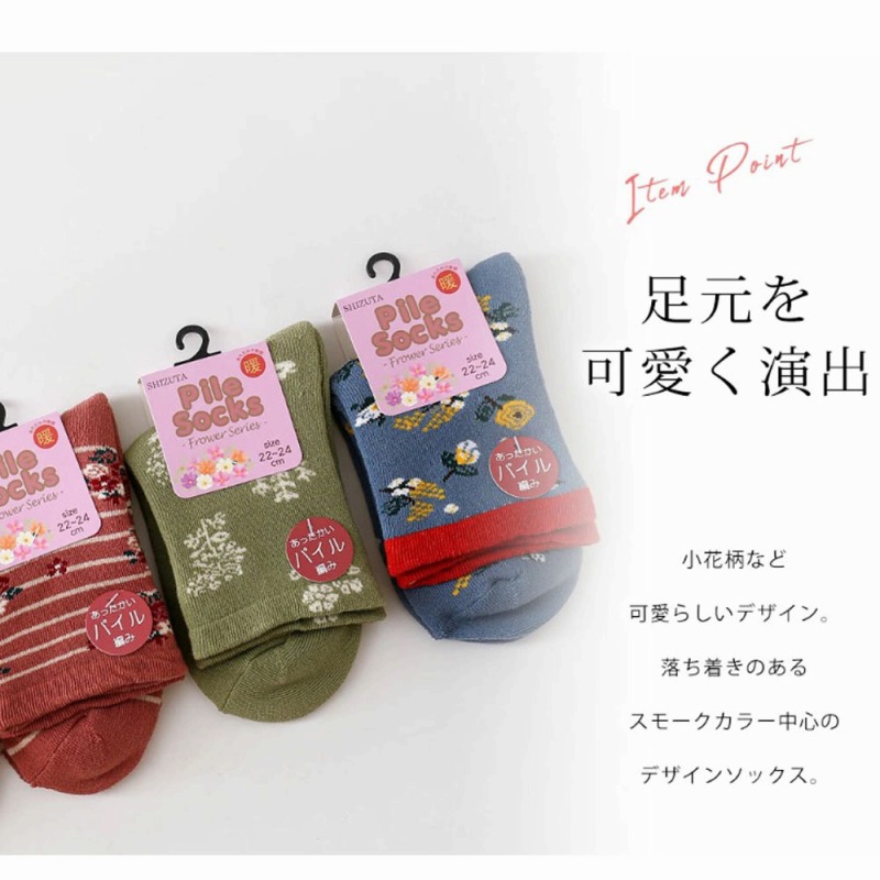 【オシャレであたたか】婦人 フラワーコーデ柄 あったかパイルソックス