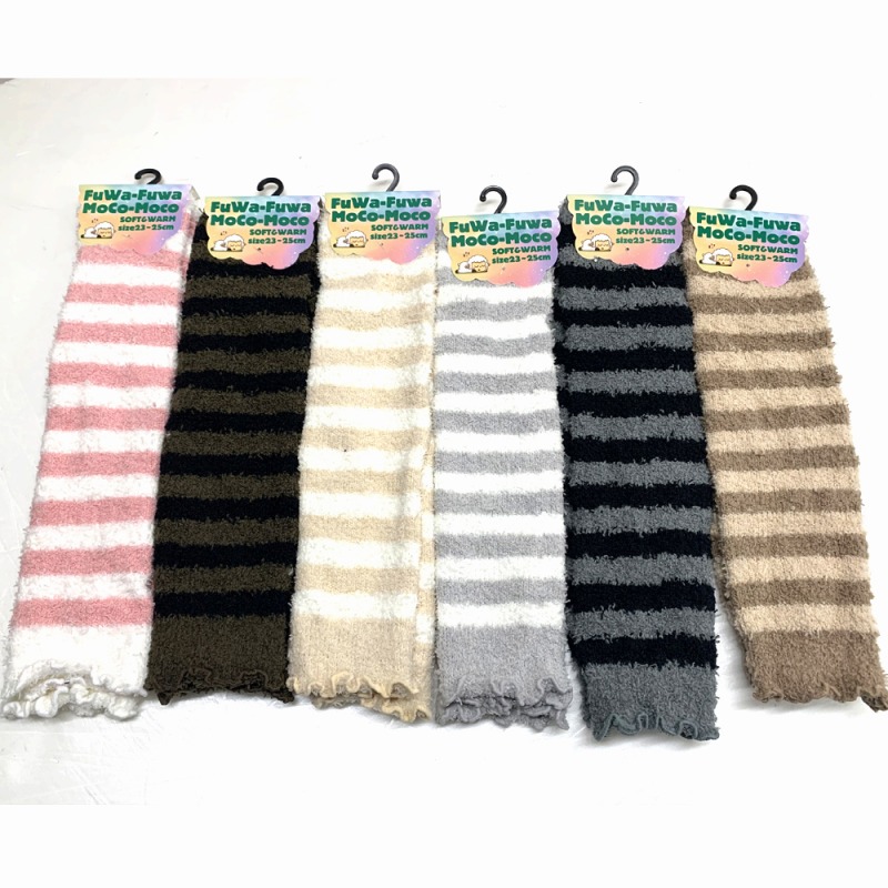 【やわらかタッチ】婦人 ふわふわ ボーダー柄 レッグウォーマー