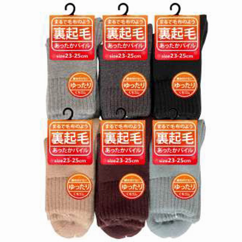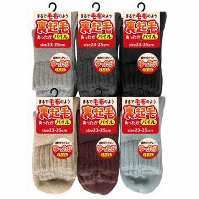 【Wであったか☆冬のマストアイテム】婦人 アクリル裏起毛 ゆったりパイルソックス