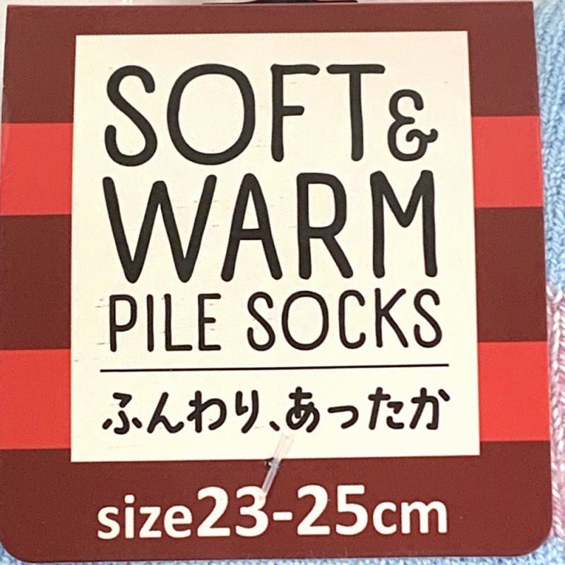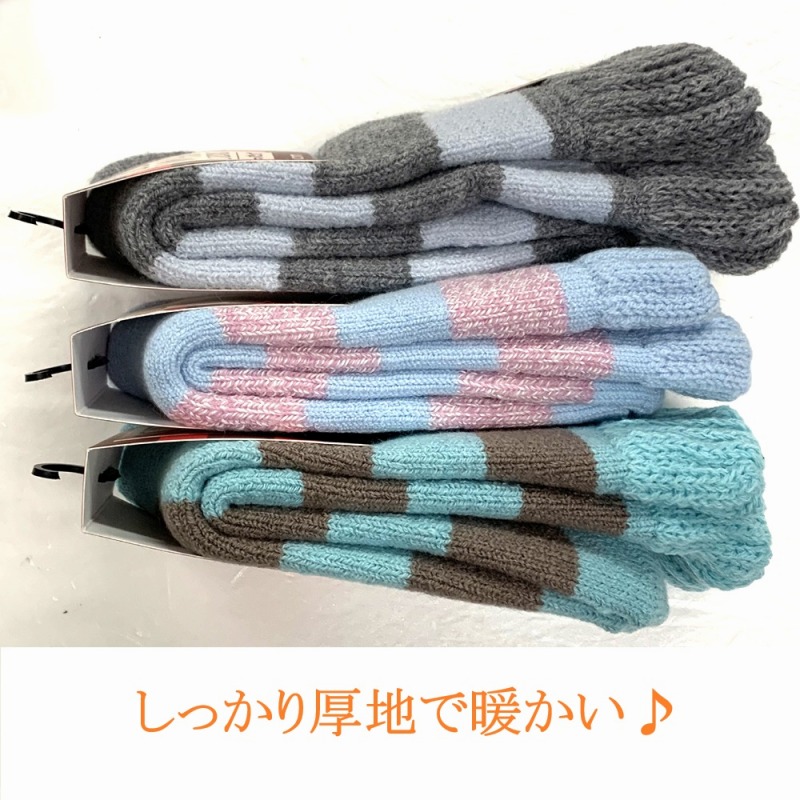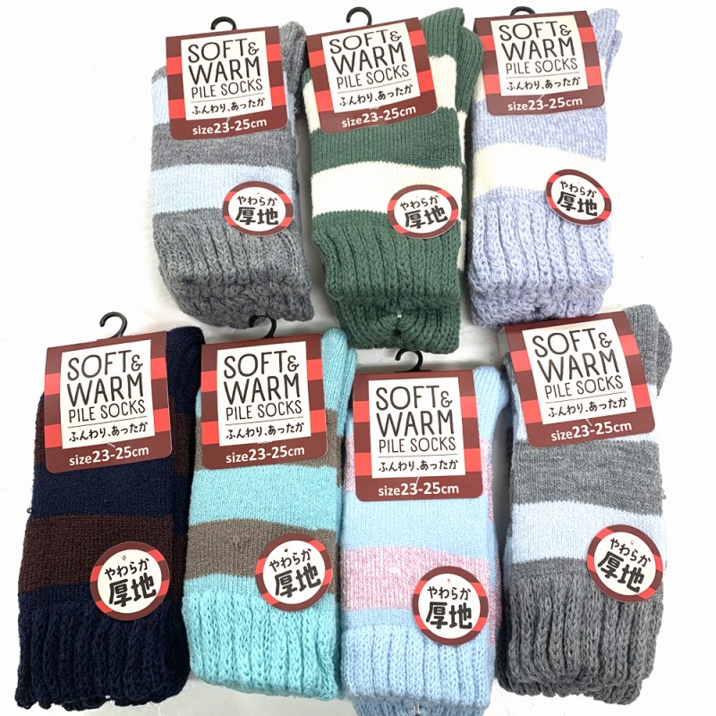 【ふんわり暖か♪】婦人 厚地パイル編み ボーダー柄 ゆったり ハイクル―ソックス