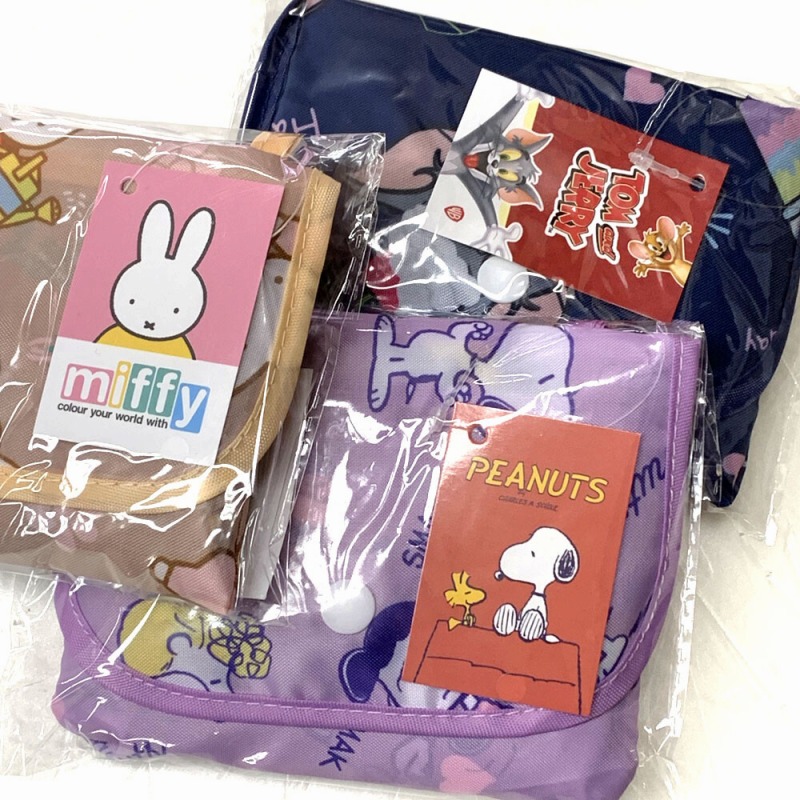 子供から大人まで大人気のキャラクター、スヌーピー、ミッフィー、トム&ジェリーのエコバッグです。