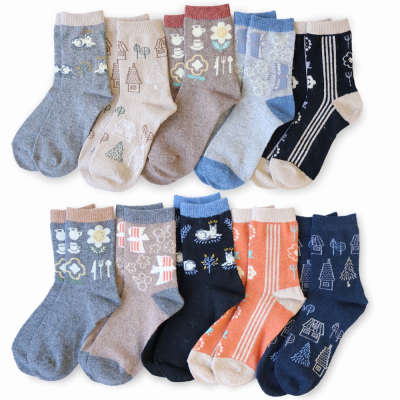 【お買得限定品☆オシャレで暖か】婦人 毛混 北欧調柄 デザインソックス