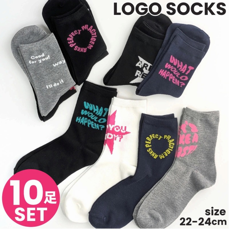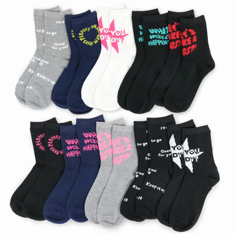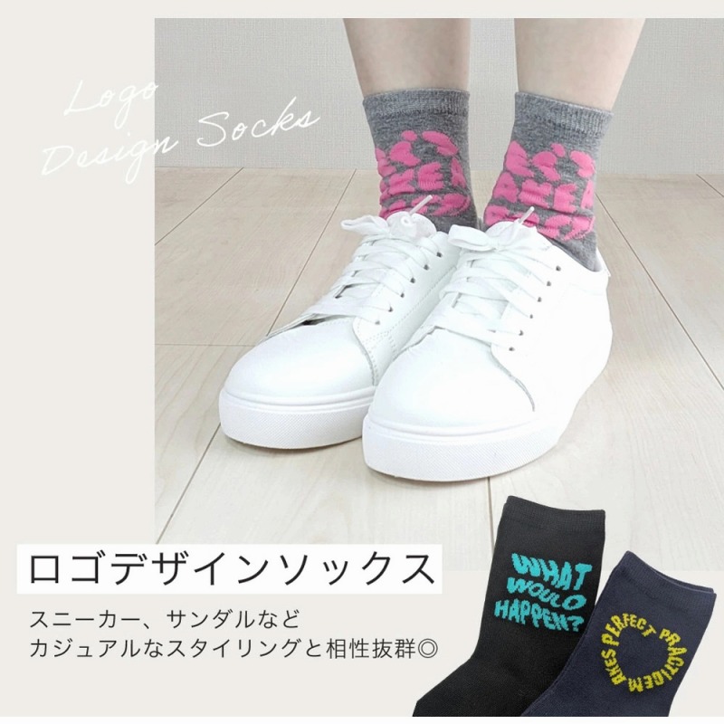 【お買得限定品☆年間売れ筋】婦人 綿混 ロゴ柄 デザインソックス