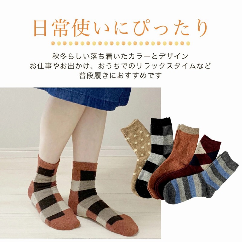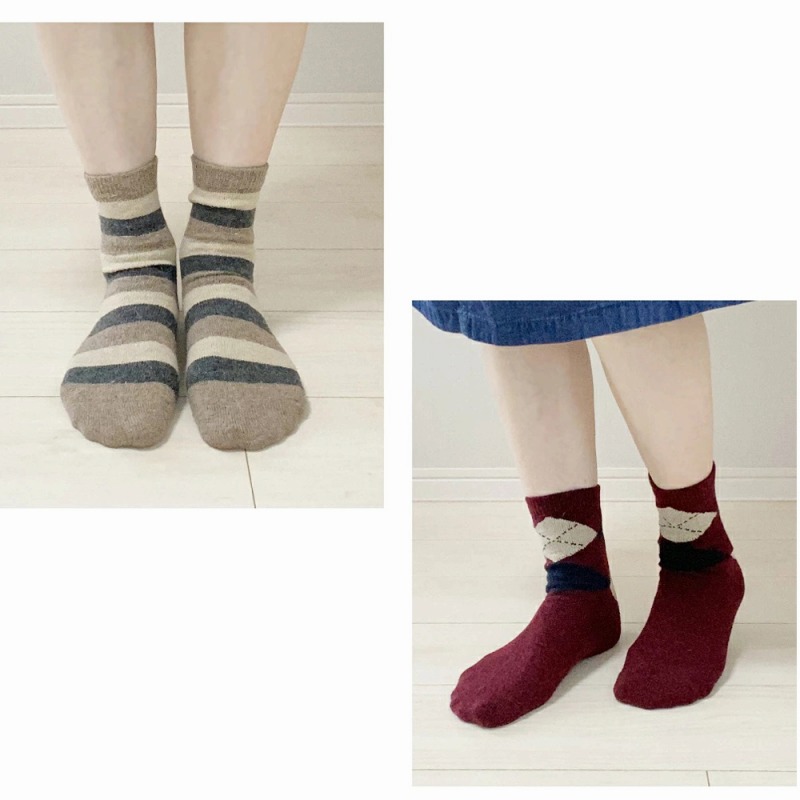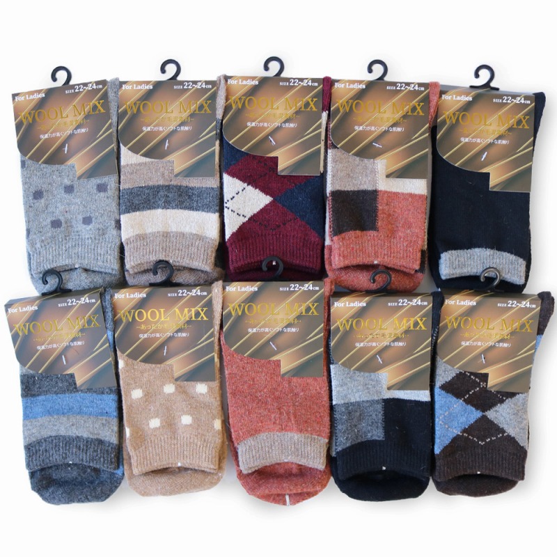 【お買得限定品☆オシャレで暖か】婦人 毛混 カジュアル柄 デザインソックス