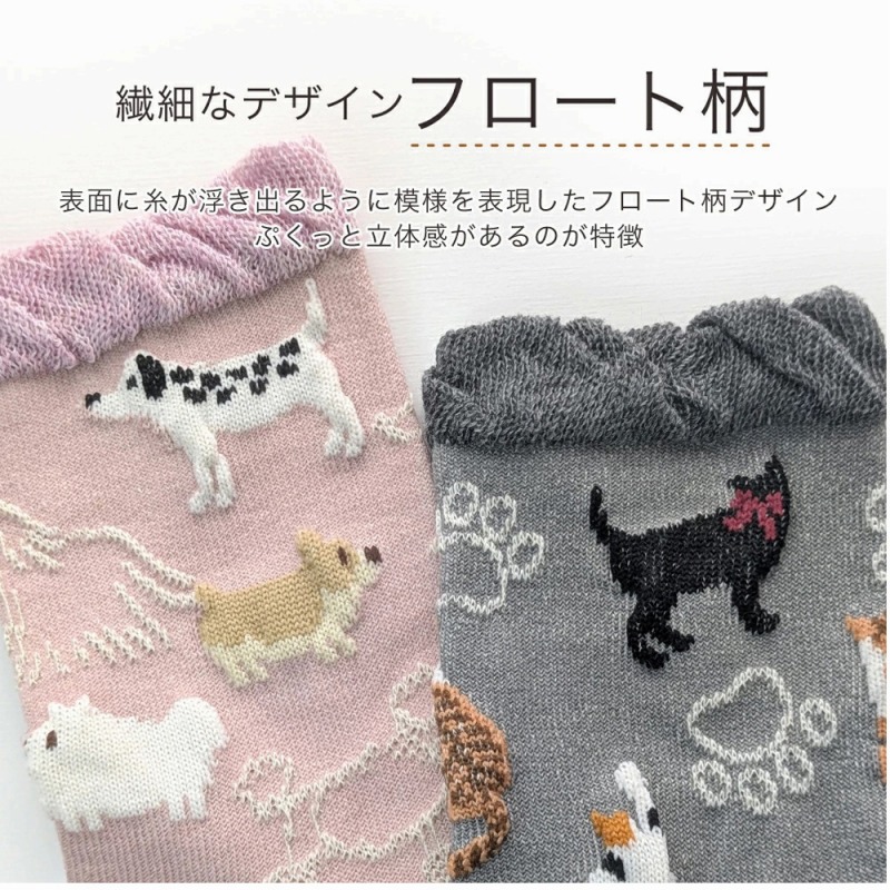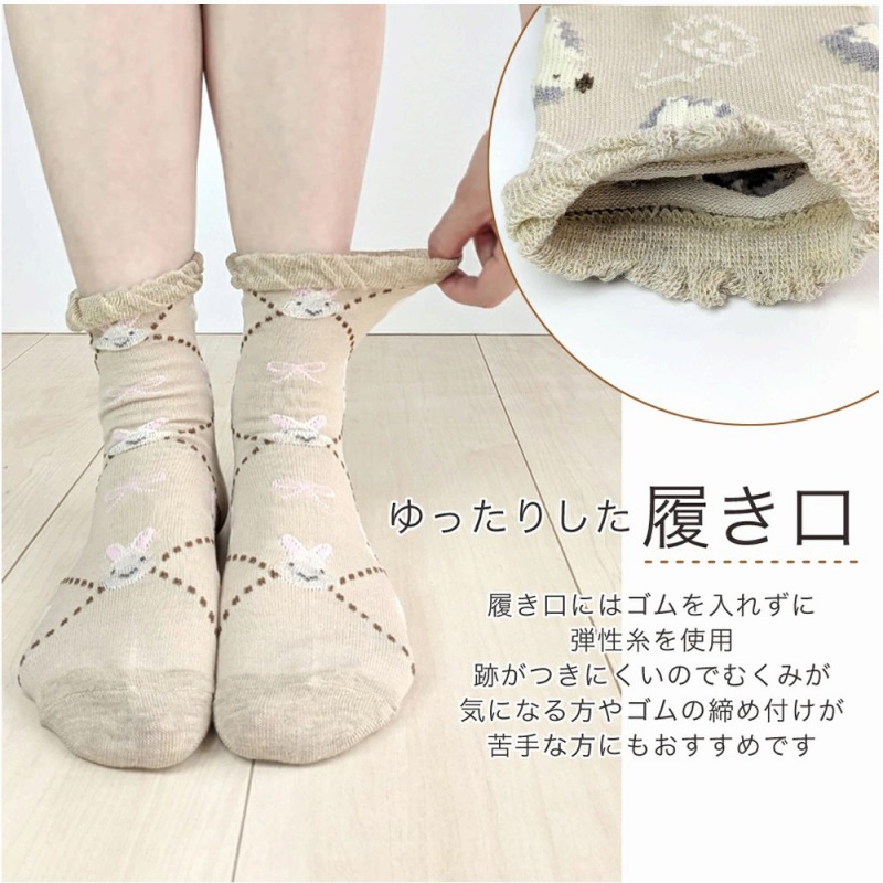 【お買得限定品☆年間売れ筋】婦人 綿混 くちゴムゆったり動物フロート柄 デザインソックス