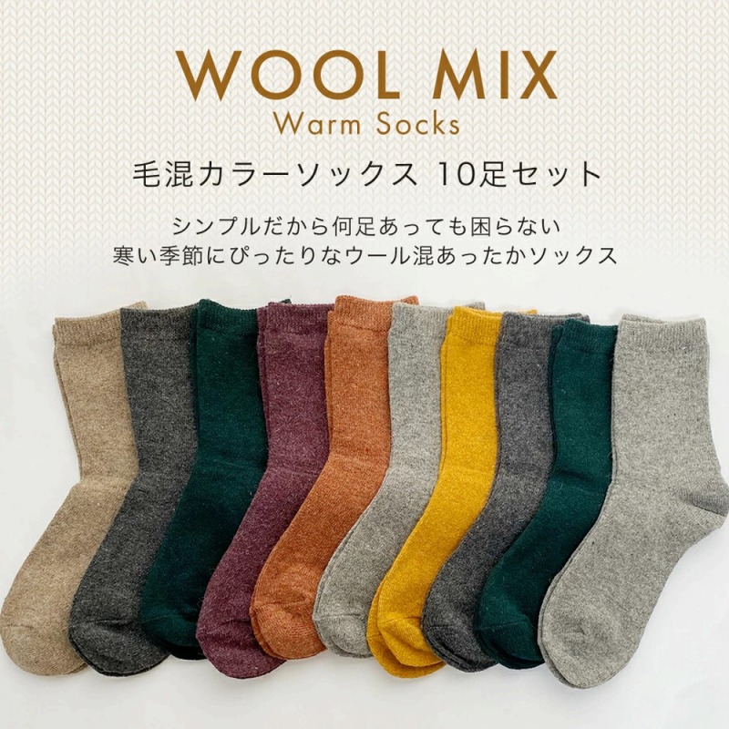 【ベーシックな冬売れ筋】婦人 毛混 無地カラーソックス