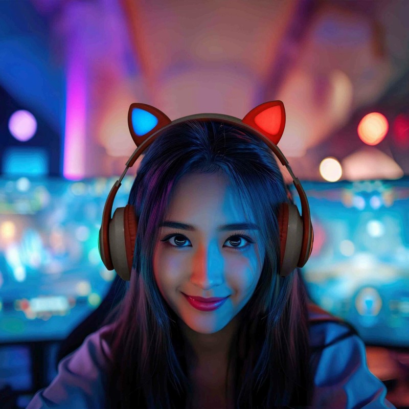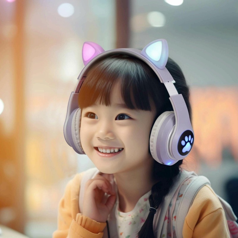 USB充電タイプでネコ耳とイヤーカップがグラデーションで光る!!