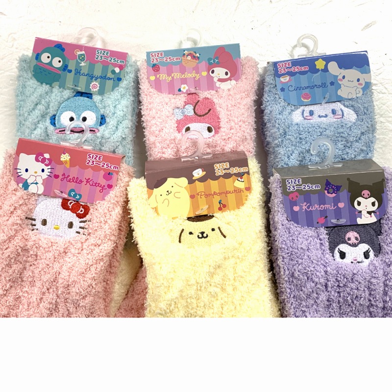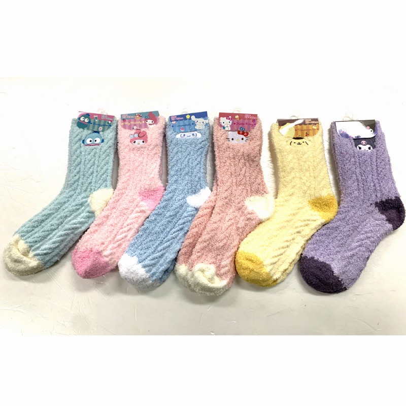 【お買得限定品☆SANRIO☆お家で暖か】婦人 サンリオ ワンポイント刺繍付 編み込みボアソックス
