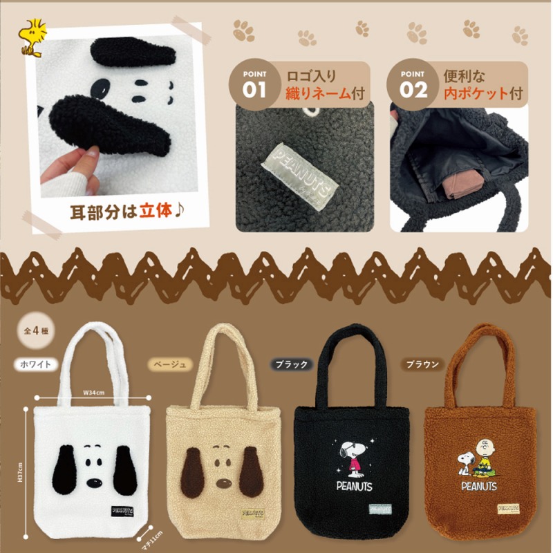 ぬいぐるみみたいなもこもこ生地の、可愛らしいスヌーピートートバッグが新登場♪