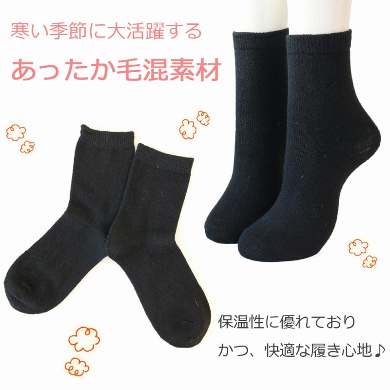 【ベーシックな冬売れ筋】婦人 毛混 クロ無地ソックス