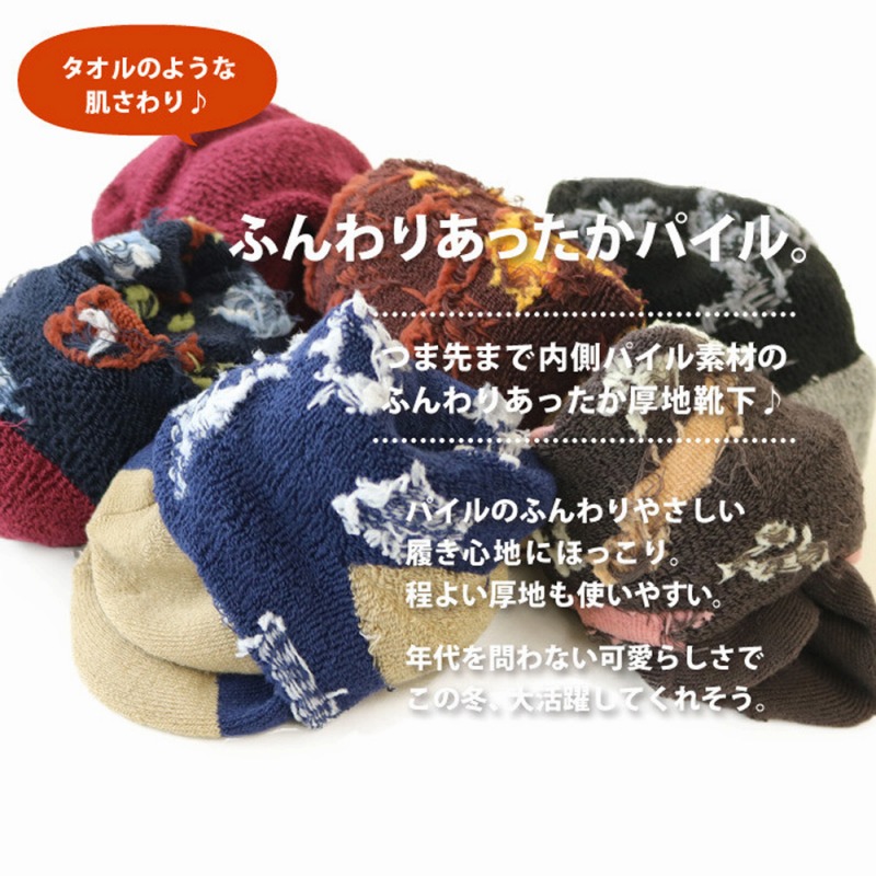 つま先まで内側パイル素材のふんわりあったか厚地靴下♪