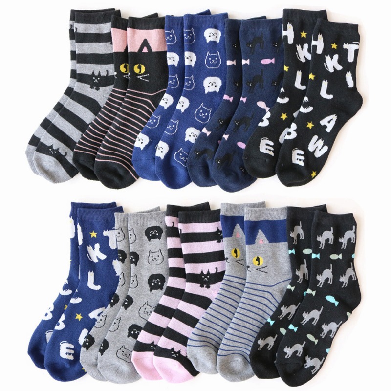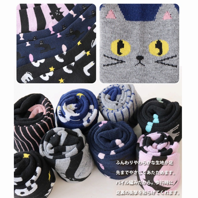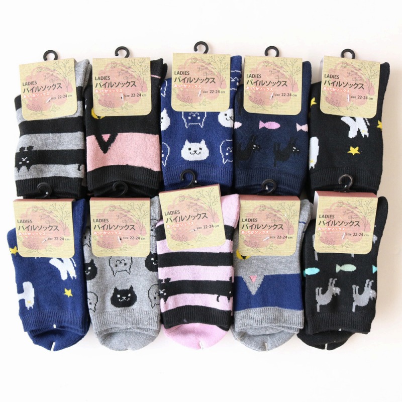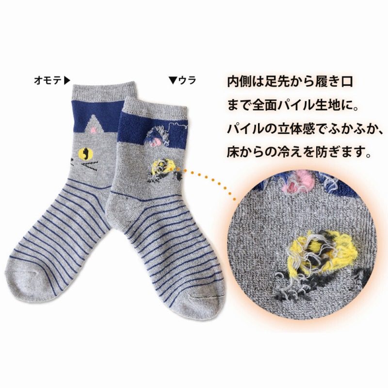 【可愛く暖か】婦人 ネコ柄 デザインパイル編みソックス