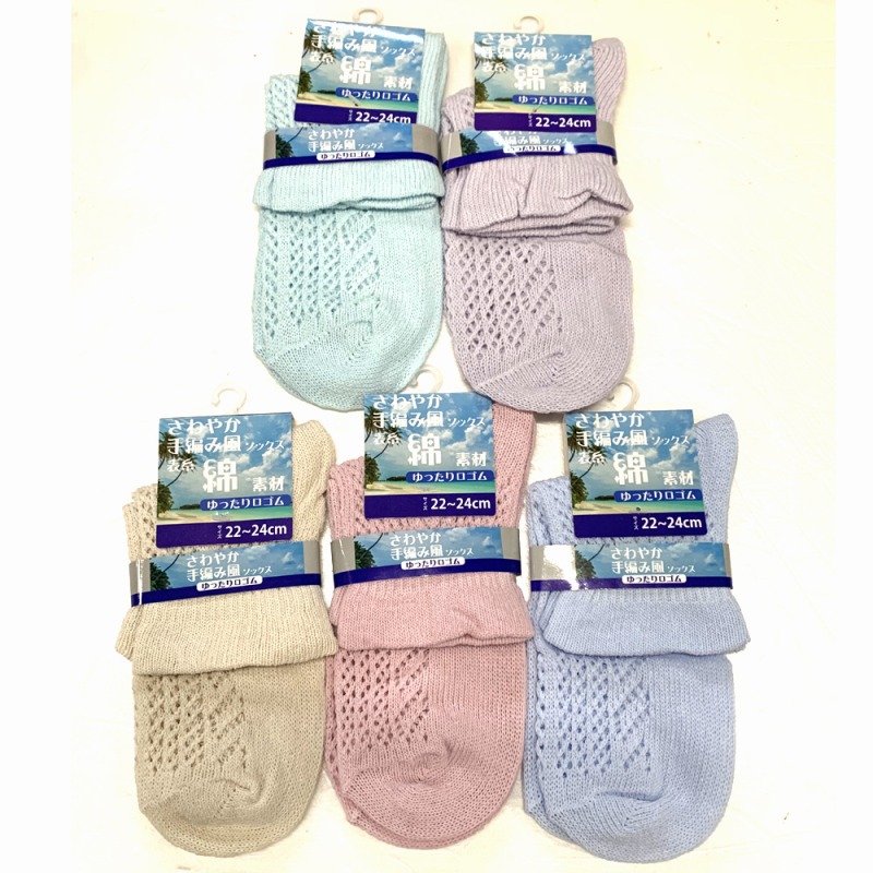 【通気性がよく爽やか】婦人 綿混 手編み風 ゆったりルミーソックス