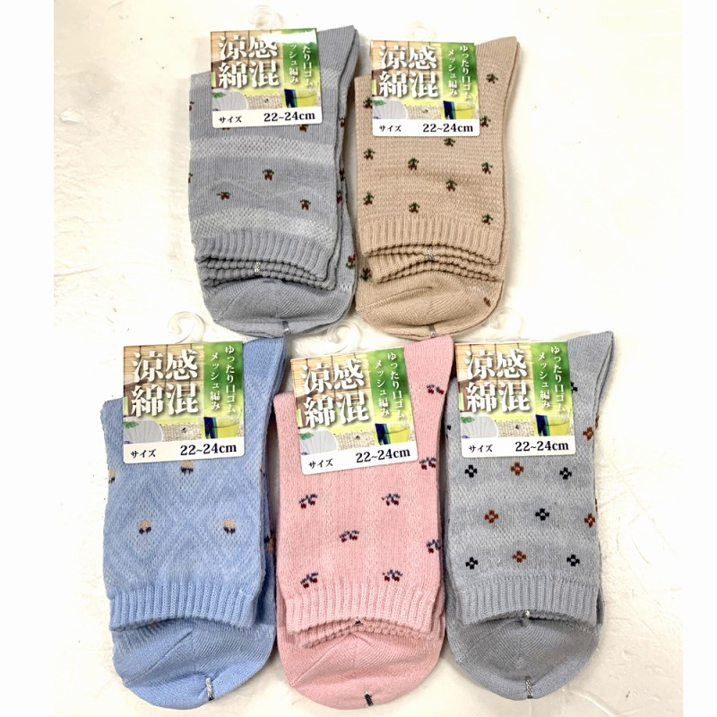 【通気性がよく爽やか】婦人 綿混 小花柄 ゆったりメッシュソックス