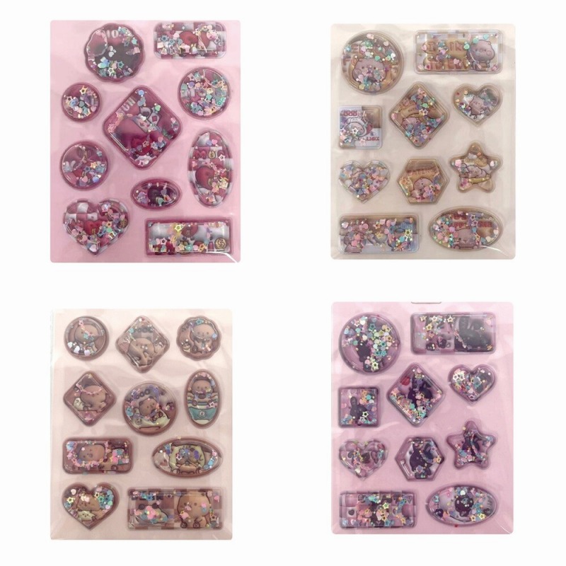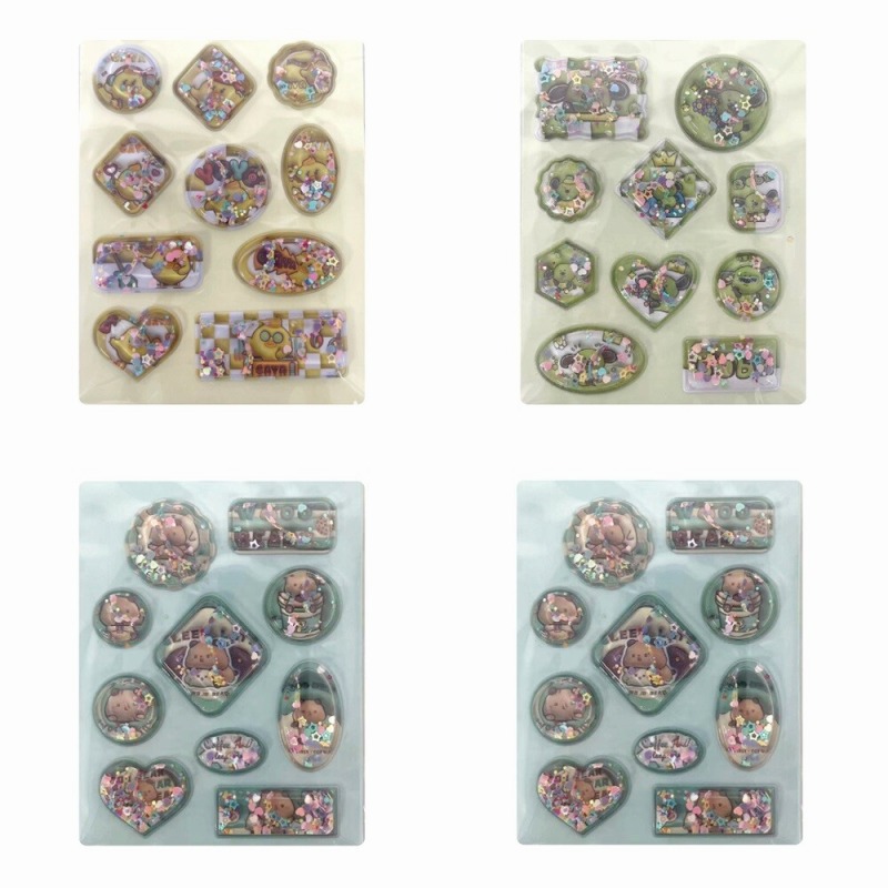 ぷっくりしたシールの中に、パーツと水入り!